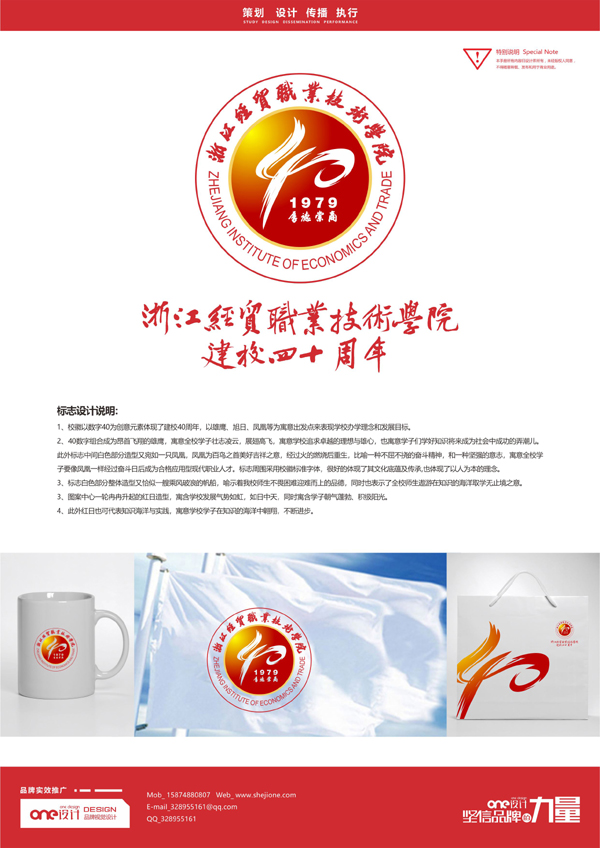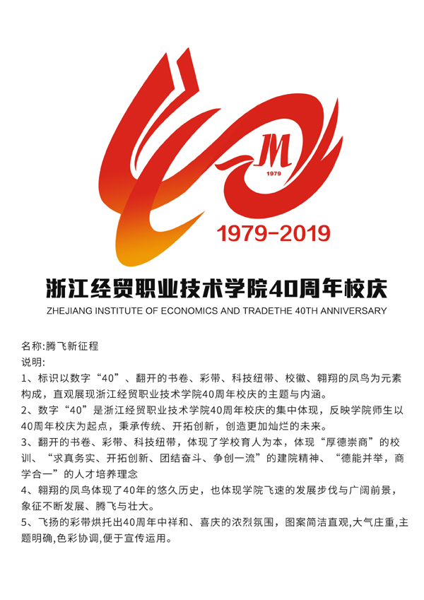学校40周年校庆标识(LOGO)设计方案征集活动启动以来,共收到45件应征作品。学校对应征作品进行评选,共评选出一等奖1个,二等奖2个,三等奖3个。现将获奖情况予以公示,公示时间为2019年11月21日-28日。如有意见请向学校宣传部反映。联系人:李孜慧,电话:0571-86929713。