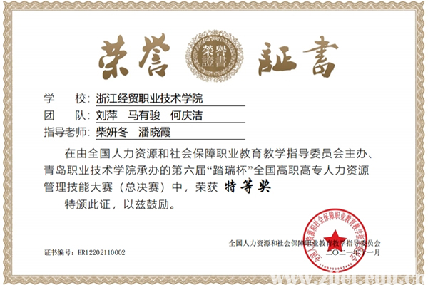 喜报丨我校在第六届“踏瑞杯”全国高职高专人力资源管理技能大赛中荣获特等奖