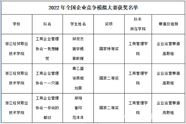 学生团队荣获2022年全国企业竞争模拟大赛国家特等奖