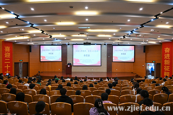 10月18日,学校邀请杭州市十三届人大常委会党组副书记、副主任,市劳模工匠协会名誉会长,杭州新时代劳动教育研究中心主任郑荣胜为全校学生作题为《弘扬三种精神,夯实人生基座》的专题讲座。学校党校第68期培训班学员现场聆听讲座, 4000余名学生以直播形式观看。校党委书记劳赐铭,党委副书记许宝峰,组织部、宣传统战部、公共教育学院相关负责人出席。讲座由公共教育学院党总支书记、院长朱颖主持。