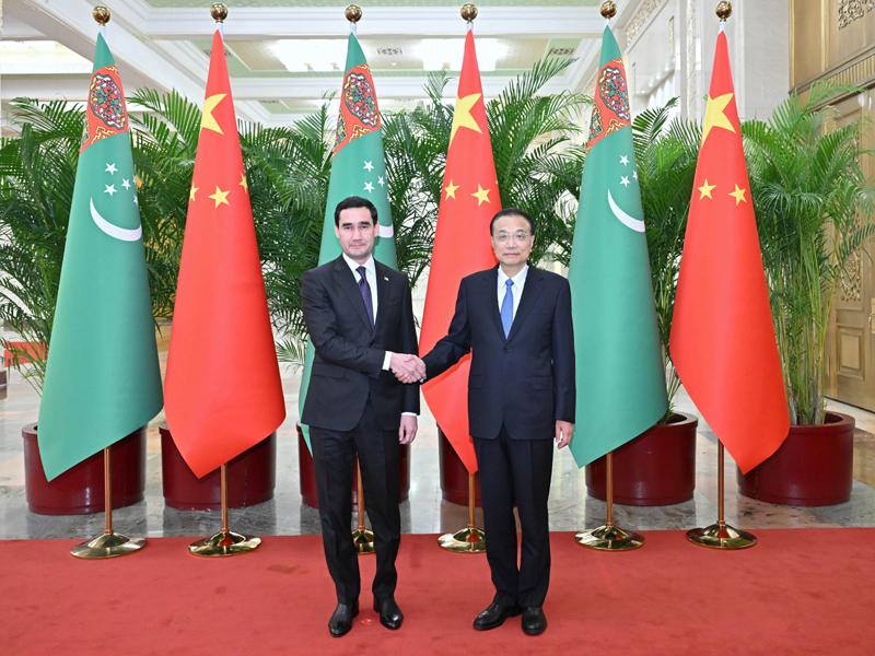 国务院总理李克强1月6日下午在人民大会堂会见来华进行国事访问的土库曼斯坦总统谢尔达尔・别尔德穆哈梅多夫。