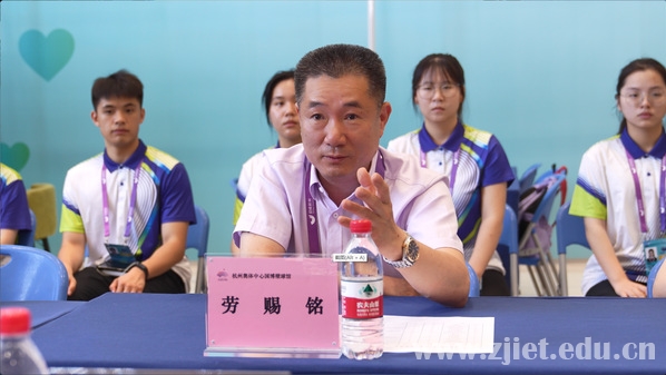 6月29日上午,党委书记劳赐铭率办公室、学工部负责人赴杭州国际博览中心壁球馆、西子宾馆看望我校亚运志愿者和服务实习生。